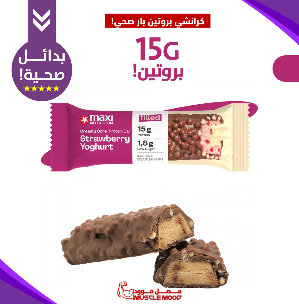 كرانشي بروتين بار صحي!-(يوقرت فراولة)-15ج بروتين